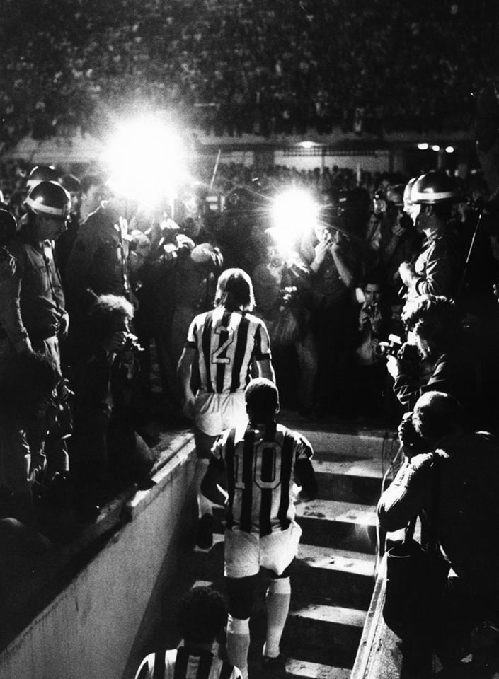 É famosa uma imagem do fotógrafo Carlos Namba, que flagra Pelé descendo as escadarias do vestiário, sendo filmado por um cinegrafista que o aguarda no último degrau.
