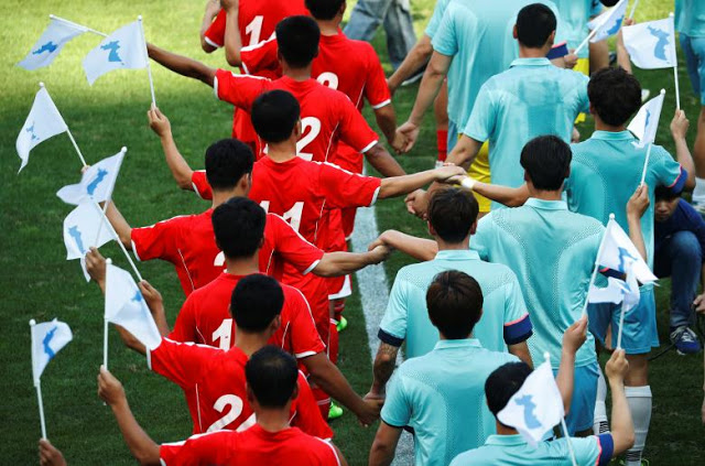 Quando tratamos de política, ideologias tão distintas, rusgas de décadas, é difícil cravar qualquer prognóstico, ainda que o retrospecto recente possa trazer otimismo e esperança às populações envolvidas neste conflito. O esporte, entretanto, segue como uma forma de aproximar estes dois povos que um dia já foram apenas um. Na primeira quinzena de agosto, em Seul, foram disputados dois jogos entre os representantes sindicalistas de classes trabalhadoras dos dois países, a Federação Geral de Sindicatos da Coreia do Norte (GFTUK), a Federação Geral de Sindicatos Sul-Coreanos (FTUK) e a Confederação de Sindicatos Sul-Coreanos (KCTU). Diante de relativo bom público, as equipes foram ovacionadas ao entrar em campo com a bandeira da Coreia unificada em mãos. A propósito do evento, também foram realizados encontros entre as organizações de trabalhadores e grupos industriais. Já haviam se passado onze anos desde o último evento similar, em 2007.